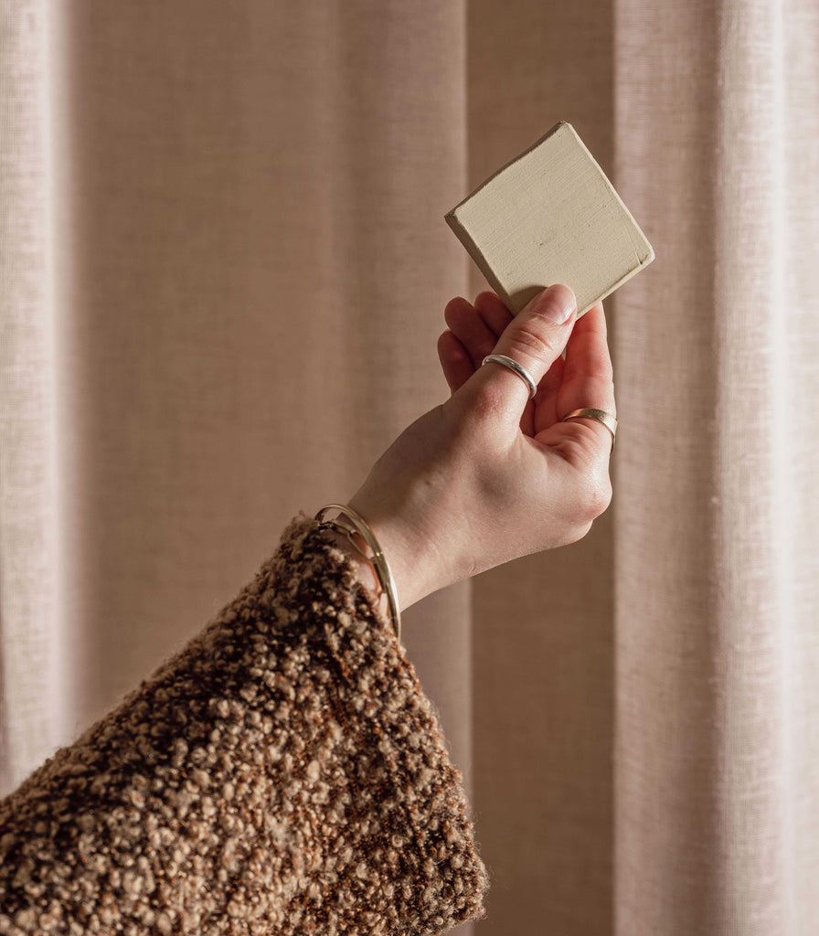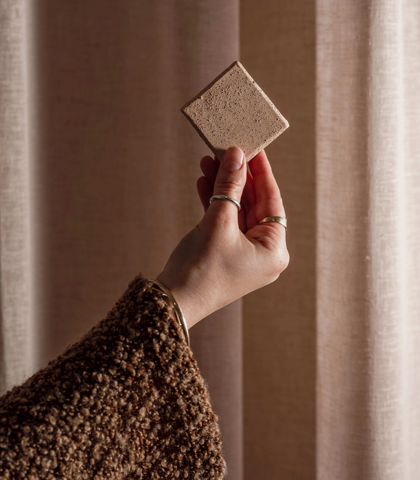 NOTE - If you're interested in our 'Puddle Stone' wall light, the 'Stone' sample biscuit will give you a good idea of the colour. Just keep in mind, the actual light will feature a unique pressed linen texture that's not represented in the sample.