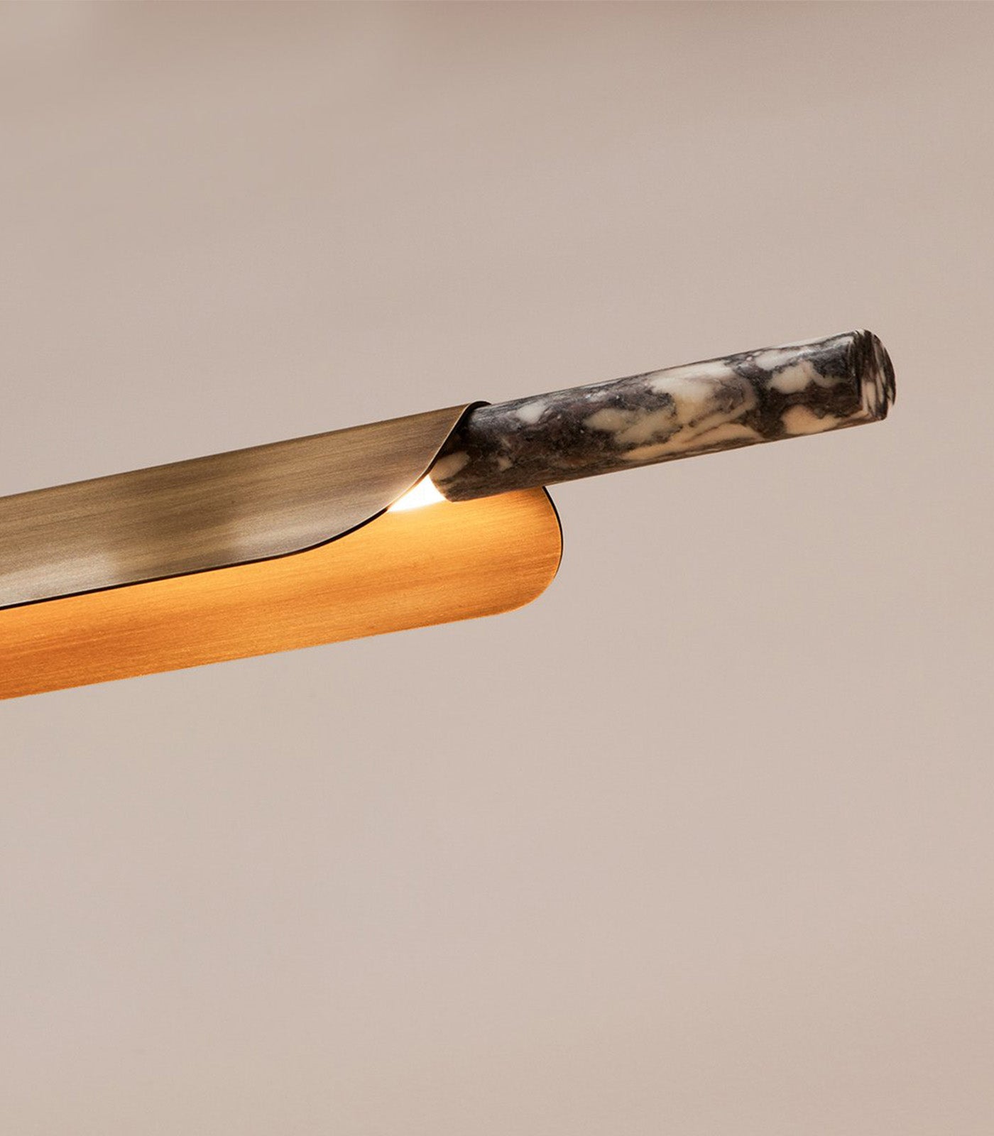 A marble tip and highly refined details evoke a subtle sense of luxury. An extensive range of material finishes and sizes make this B-TD's most versatile fixture.