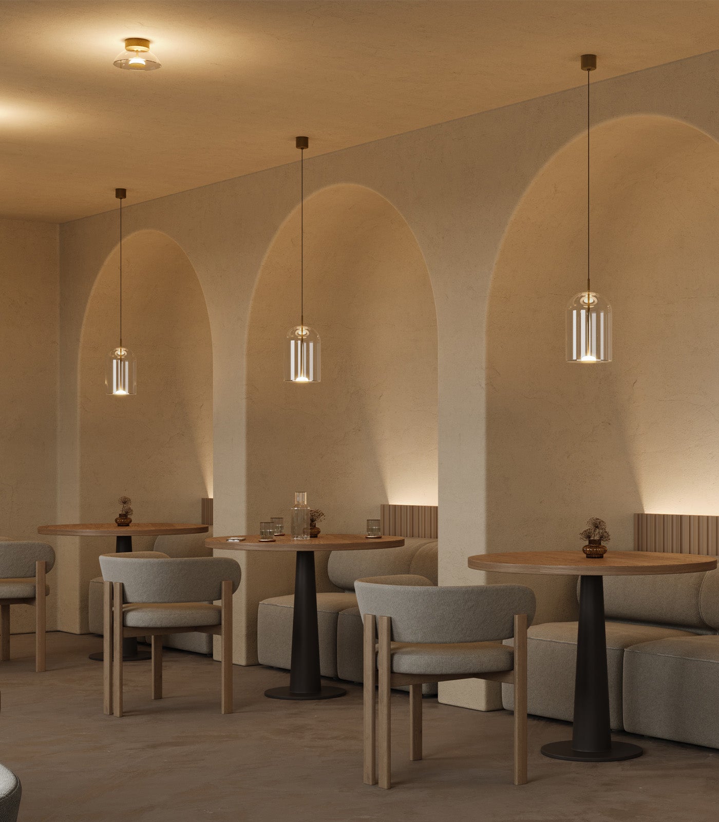 Its refined proportions and minimal detailing reflect the essence of modern lighting, where clarity, form, and atmosphere meet.