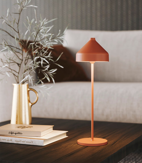 Amelie Floor Lamp by Zafferano is a cordless, rechargeable lamp designed for versatility. It includes a silicone cap and hook, to also allow you to use it as a pendant.