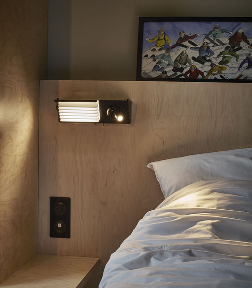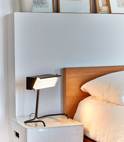 A rigorous elegance. A dimmer and two gelatins, to regulate the intensity and warmth of the light; adjustable feet, to adapt to the floors.