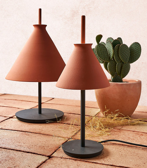 Okina Table Lamp is part of a collection of lights inspired by the mushrooms and fungi that grow in the humid forests of the Basque Country. Its simple and organic shapes convey a natural tranquility. Handmade in Southern Spain, the clay and craftsmanship make each lamp unique.