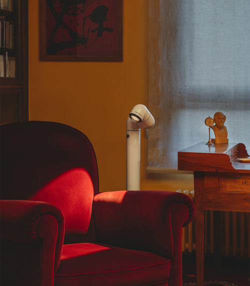 Tatu Table Lamp is an object-lamp that has become a memorable icon of Spanish pop culture from the 1970s. Incorporating LED technology, the light intensity and focal aperture are easily adjustable, conducive to quiet retreat or activities that require concentration. And its friendliness is legendary.