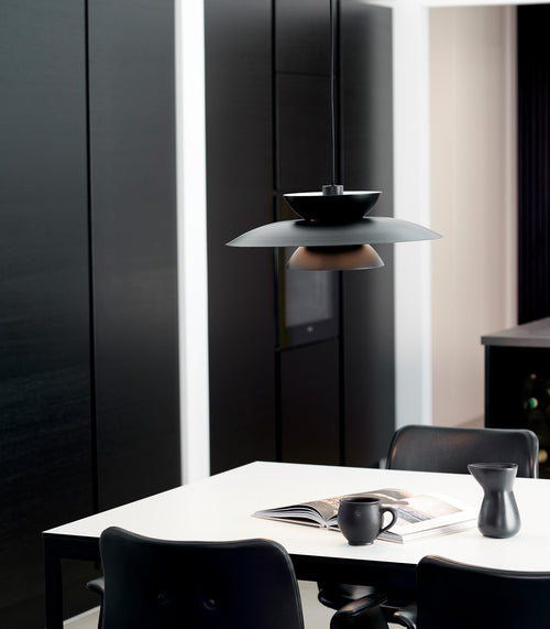 The balance pendant has a slim design, so it does not cut the visibility or take up any unnecessary space in the room. The large illuminating surface provides a good downward light which is advantageous above the dining, kitchen or coffee table.