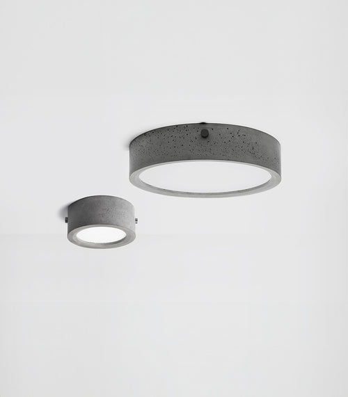 Defined by its cylindrical form, the LV Ceiling Light introduces quiet structure to a space. Cast from a blend of new and recycled concrete and finished with black anodised aluminium fixings, it’s a durable and versatile choice suited to a wide range of settings. Its continuous concrete surface brings a subtle material depth drawing the eye without dominating the room.