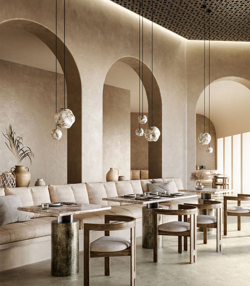 Stone Curve Linear Pendant Light perfectly personifies Mediterranean style - natural and warm, while the Murano glass sphere recalls the harsh beauty of stone. Each lamp in this collection exhibits the exceptional skills of master glassmakers.