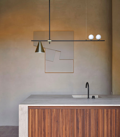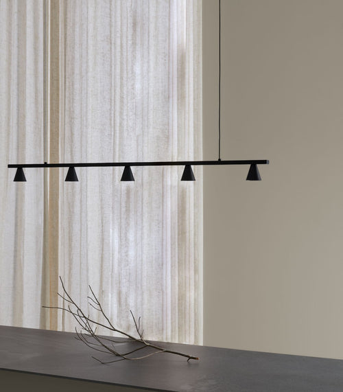 Stant Linear Pendant Light is a series of suspension and ceiling lights inspired by the basics of geometry: lines and circles.