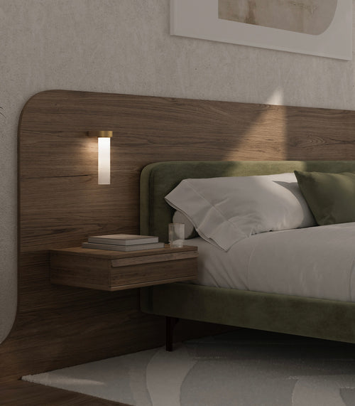 Available in Old Brass or Iron finish, with a ribbed borosilicate glass shade in clear or frosted options, it brings tactile depth to its precise geometry. The result is a lighting piece that feels deliberate, directional, and distinct.