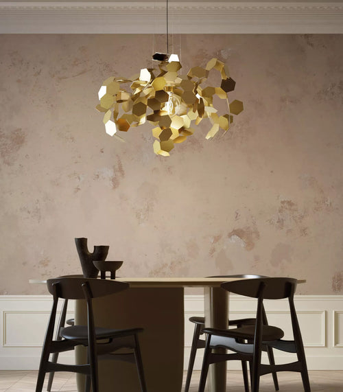 The Andromeda is a lamp that can take on multiple forms depending on how the various hexagonal diffusers are folded. With Andromeda, it is possible to conceive extraordinary compositions, characterised by unique reflections, creating evocative effects in any environment.