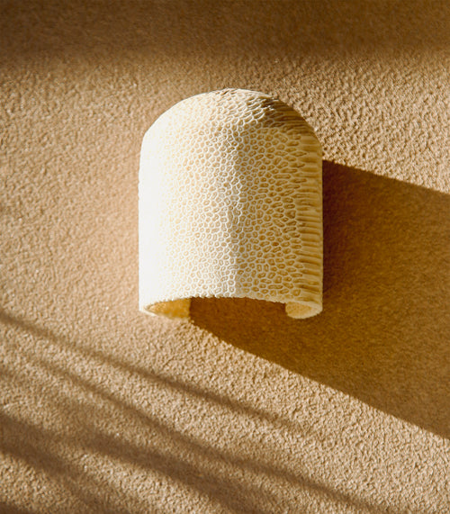 The Fossil Coral Dome Brass Wall Light by Marovo Island Traders is an artisan-crafted piece made from authentic fossilised coral, celebrating the textures and natural beauty shaped over millennia. The organic dome form is paired with a warm brass fitting, creating a refined contrast that highlights both material and craftsmanship. Designed with sustainability and timeless elegance, this eco-friendly wall light brings a soft, ambient glow to luxury interiors, boutique spaces, and outdoor settings.