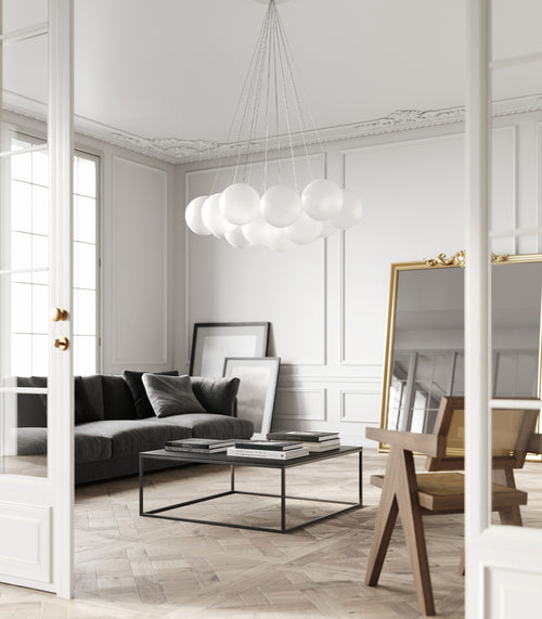 Random Cloud captures the essence of why a cloud continues to fascinate us: voluminous yet simultaneously light and ethereal. Random Cloud reimagines the chandelier concept in a contemporary manner, expanding the collection in functionality.