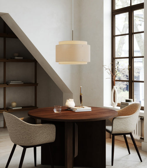 The Takai wall light by Studio Mavro//Lefèvre by Sofie Lefèvre has a fabric shade with a beautiful shape that invites you to look at it from many different angles. The combination of the flax linen shade and the burnished brass base creates a very soft and warm design language.