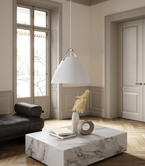 The Versale series by Anker Studio is the epitome of Scandinavian minimalism cut to the very core. A perfectly round shade with a uniform light surface only disturbed by the piercing frame. The pendant can easily set the perfect ambience for your dining area with a pleasant, glare-free light.