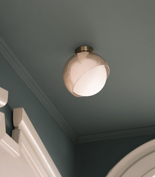The Bloom Asymmetric Pendant Light is an Italian-designed interior fixture that brings depth and sophistication to any space. Featuring a double-layered glass design, it pairs a classic opal orb silhouette with an outer decorative shade in brass or black, creating a layered, sculptural effect that enhances both form and light.