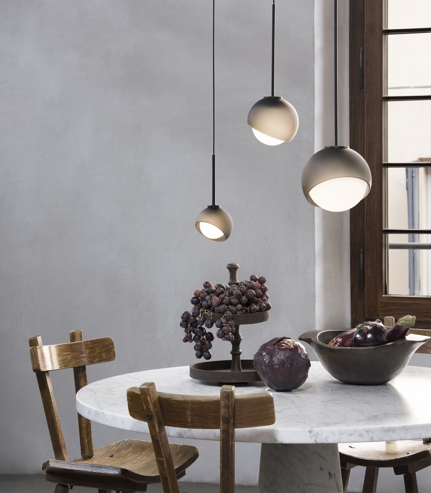 Available in four sizes; 12 cm, 17 cm, 22 cm, and 30 cm, the Bloom Asymmetric Pendant Light delivers a functional, ambient glow while offering versatility in composition. Its dual-lined glass shade softly diffuses illumination, while the contrasting outer layer adds a refined design detail.