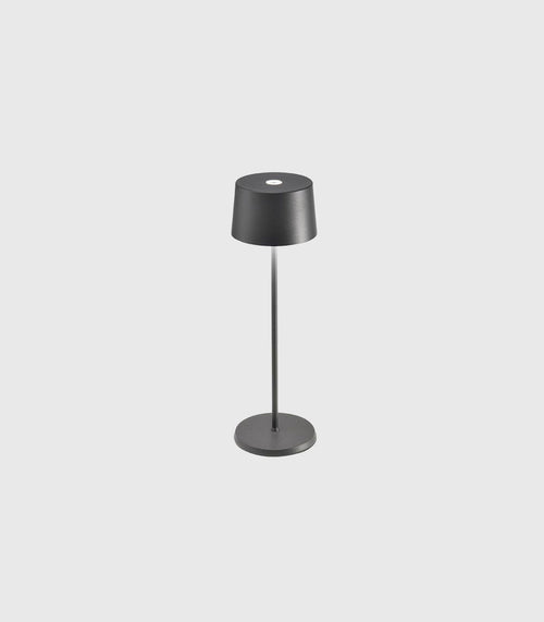 Pina Table Lamp is made of painted die-cast aluminium with a polycarbonate diffuser. Suitable for outdoor (lamp IP54 rating) and indoor use (lamp on charging base IP20 rating).