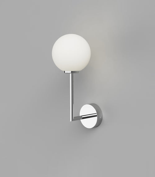 The light frame in Brass or Black is completed by a spherical opal white glass ball that hides the light source and spreads a soft glare free light into the room.