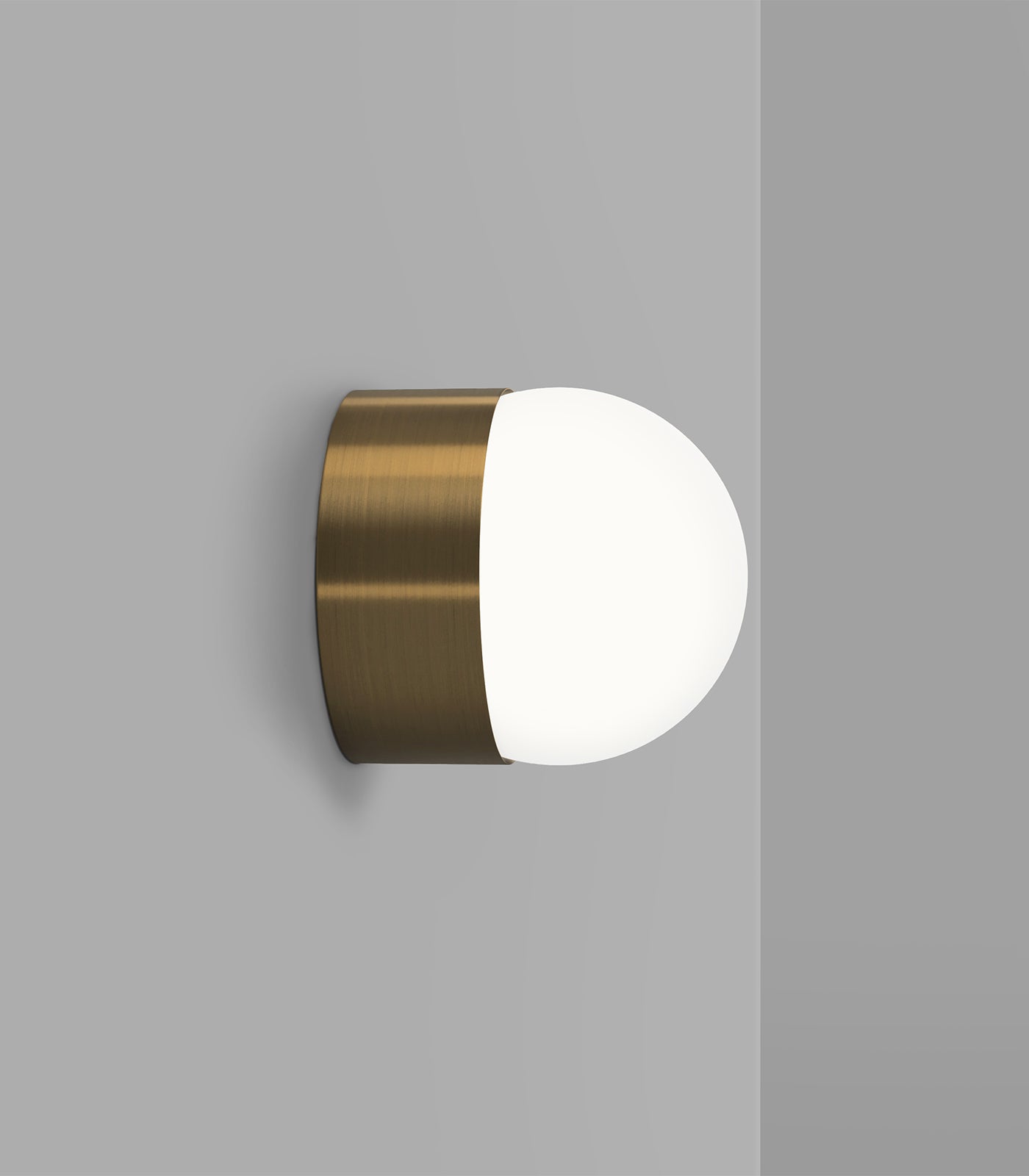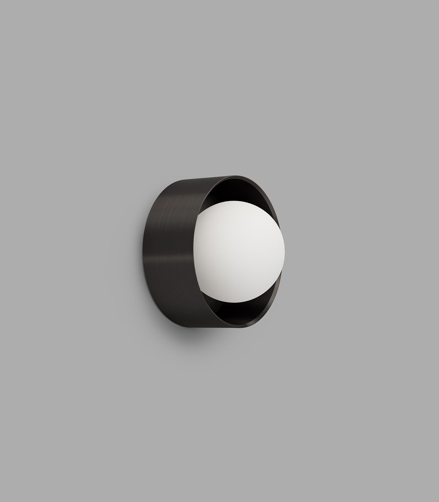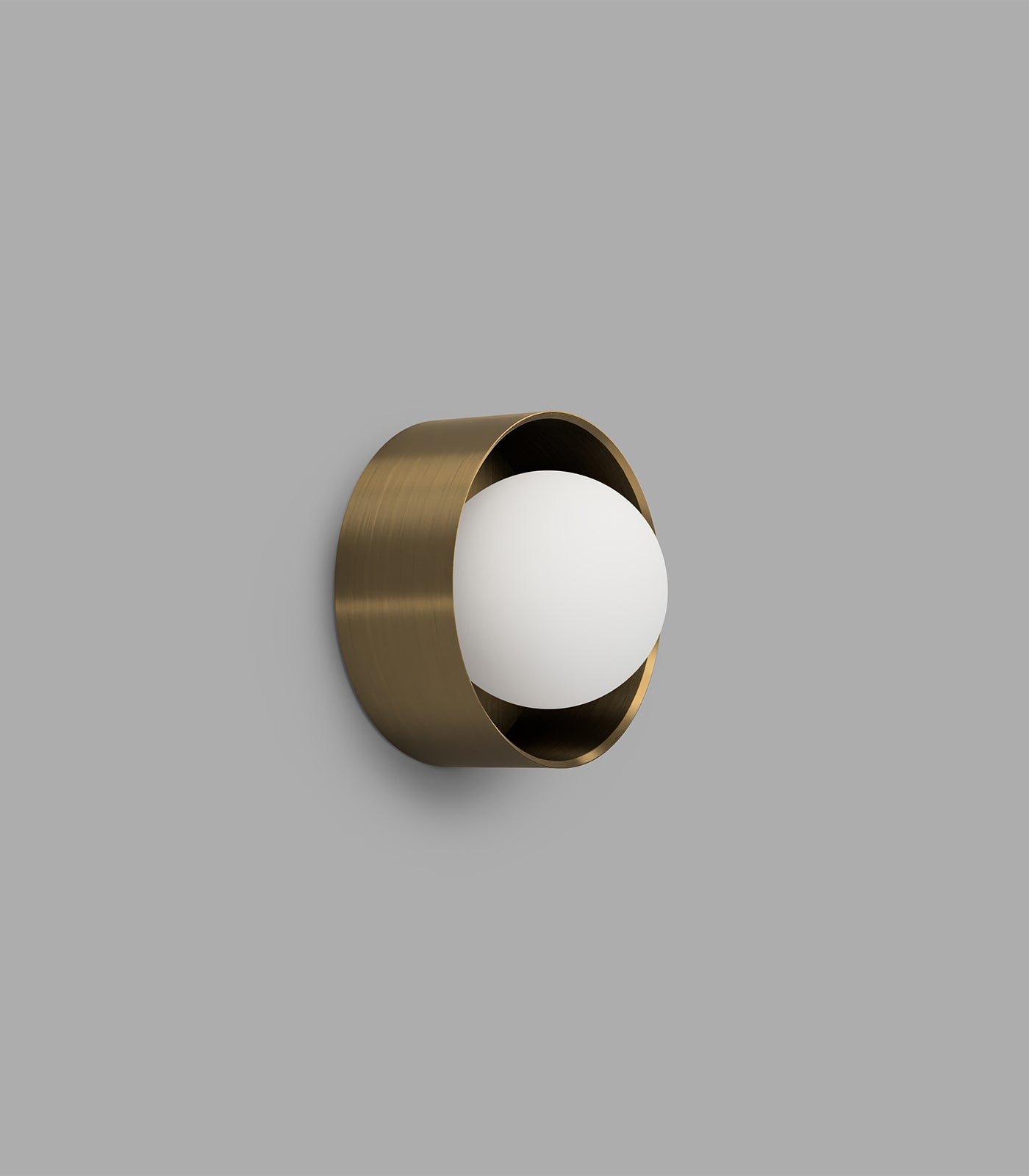 Orb Sur Wall Light takes the classic glass sphere of the Orb collection and incorporates an aluminium frame, adding an extra element of depth to this most versatile wall light. The white variation features an aluminium frame while the old brass and iron feature a solid brass frame. The perfect sphere of opal glass emits a soft and diffused light and will sit comfortably in any interior setting.