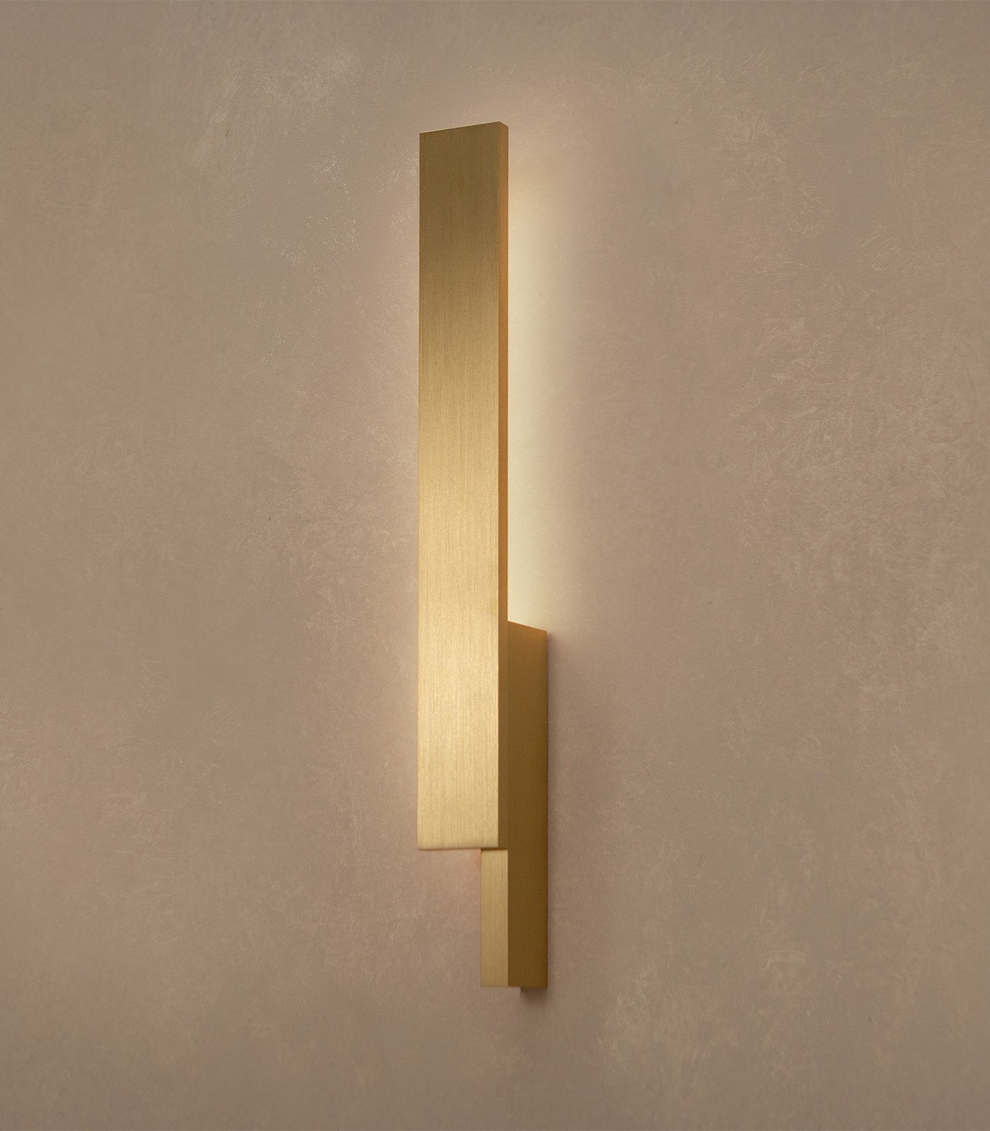 Crafted from precisely machined blocks of brass, The Bloc Wall Light features a powerful LED light source that casts a soft, diffused light back onto the wall, creating a warm ambient glow.