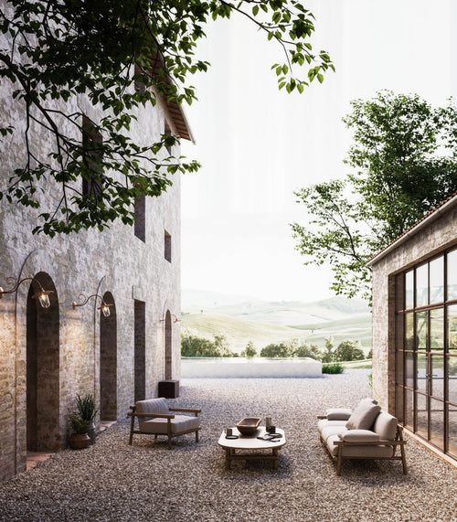 This specific outdoor fixture is available in a modifiable curve or straight arm. Moreover, you can choose from either a frosted or transparent glass finish. The Contrada collection consists of 3 additional variations such as ceiling light, pendant light, and wall light.