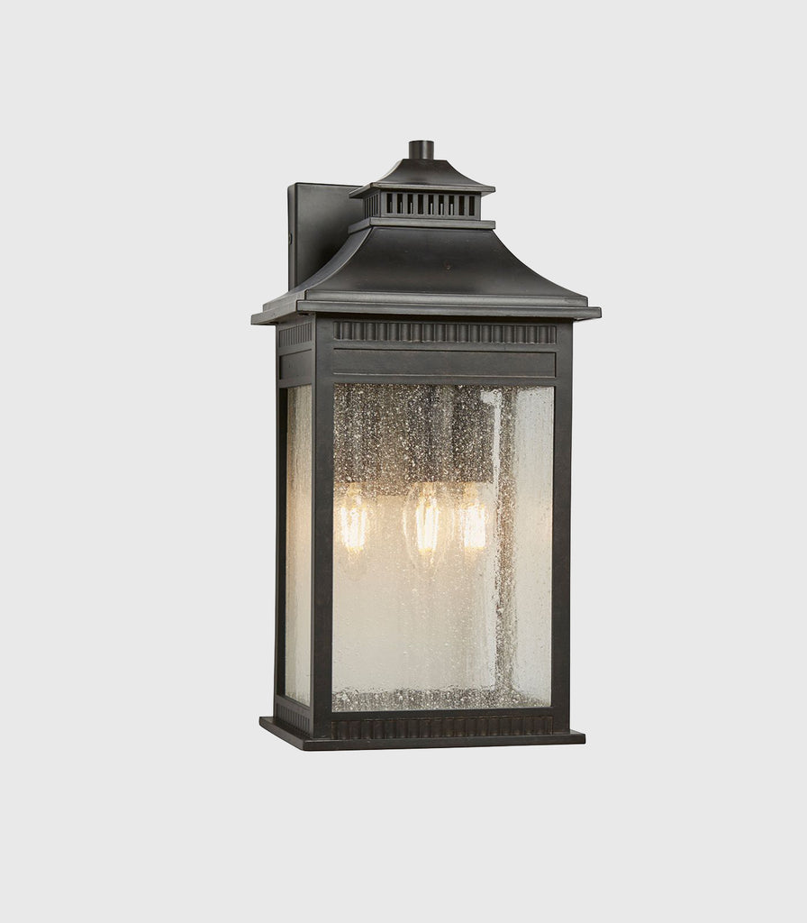 Livingston Outdoor Wall Light has classic yet subtle styling with the clear seedy glass complementing the rich Imperial Bronze finish. Made of a unique composite material this outdoor collection is guaranteed to withstand the harshest of elements and features a five year finish warranty.
