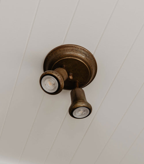 Mini Flush Ceiling Light is where ceramic meets antiqued brass. Available in two different styles, this interior fixture illuminates objects with a refined profile, an element of a flourishing and popular design.