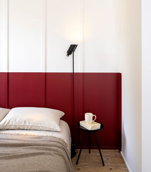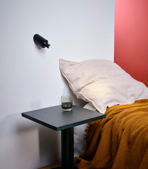 A reading lamp / wall lamp without frills, to be set on each side of a bed. This lens allows you to read comfortably without straining your eyesight. Available with or without an integrated on/off switch.